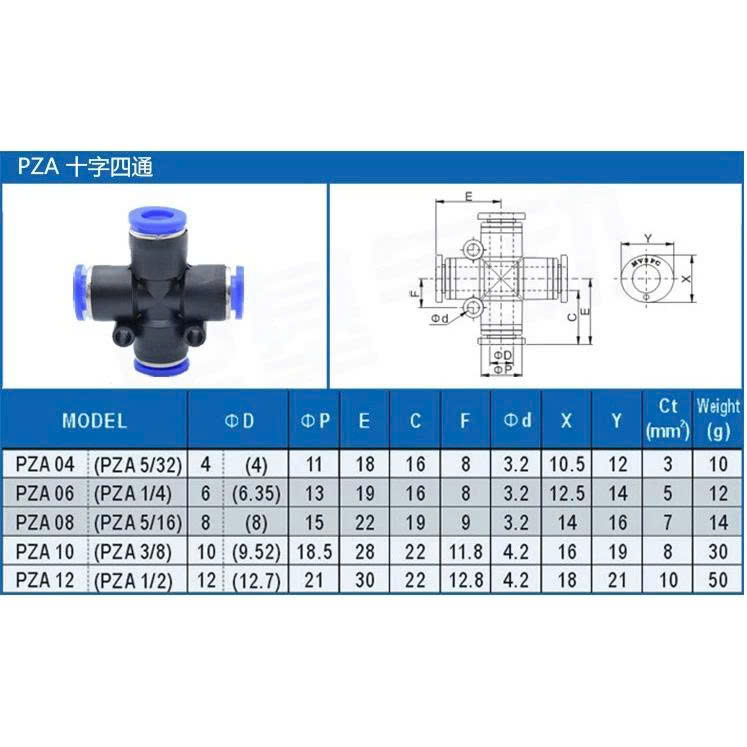 1.Sơ lược về sản phẩm Đầu nối PZA – nối 4 góc ống hơi, khí nén, phun sương: